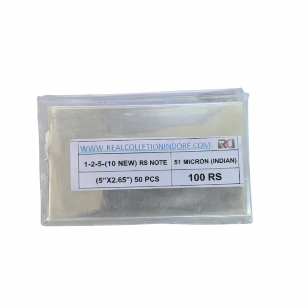 Currency Note Sleeves – 1, 2, 5 & New 10 Rupee Notes (6.5x13cm) – Pack of 50 – RCI