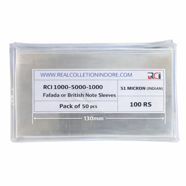 RCI Currency Note Sleeves – 50 & 100 Rupee Old Notes (8×16.5cm) – Pack of 50