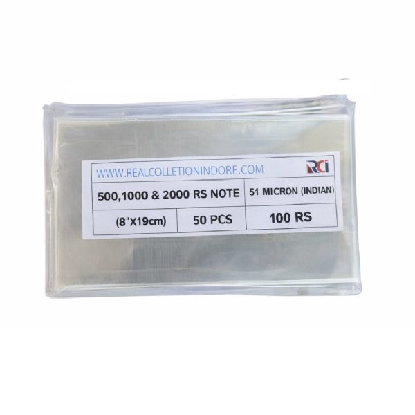 RCI Currency Note Sleeves – 500, 1000 & 2000 Rupee Notes (8×19cm) – Pack of 50